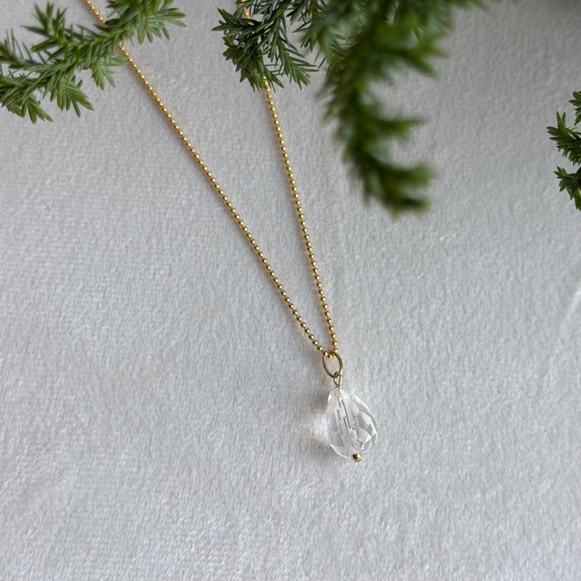 【2way】Drop crystal necklace 【2way】ドロップクリスタルネックレス 素材 : 14kgf /クリスタル サイズ : 全長 45cm クリスタルチャーム 20×10mm ー 留め具オプション ー ☑︎アジャスター+5cm 追加料金 ¥660 取り外し可能なチャームで2WAYに楽しめるクリスタルネックレス。 存在感のある大きめのクリスタルとしっかりとした強度のあるボールチェーンを使用。 チャームを外せばシンプルなチェーンとしても使えるため、カジュアルからフォーマルまで自在に着回せます。お守りとしてもおすすめです。 _______________________ ー14kgfとはー 芯となる金属(真鍮など)に14金の層を圧着させたもので、14金の層の重量が総重量の1/20以上のものを言います。 金メッキの約100倍の厚さがある為剥がれることがほぼなく、酸化や変色にも強いです。 その為、比較的金属アレルギーの反応も起きにくい素材と言えます。 ※こちらの素材でも希に金属アレルギーが起きる方もいる為、当店では“アレルギー対応”表記はありません