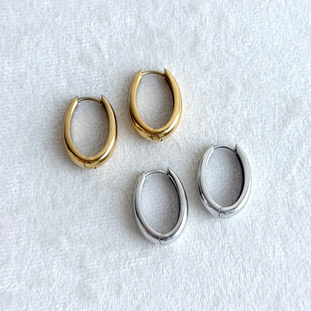 Curve hoop earrings 素材:ステンレス サイズ:全長23×17mm カラー:ゴールド/シルバー イヤリング変更不可× シンプルなフープピアスをセレクト。 アクティブなライフスタイルの方も安心の ・取れにくい ・変色しにくい ・着けっぱなしでも大丈夫の3拍子! 引っかかりがほとんどないので小さなお子さまがいても安心して着けられます。