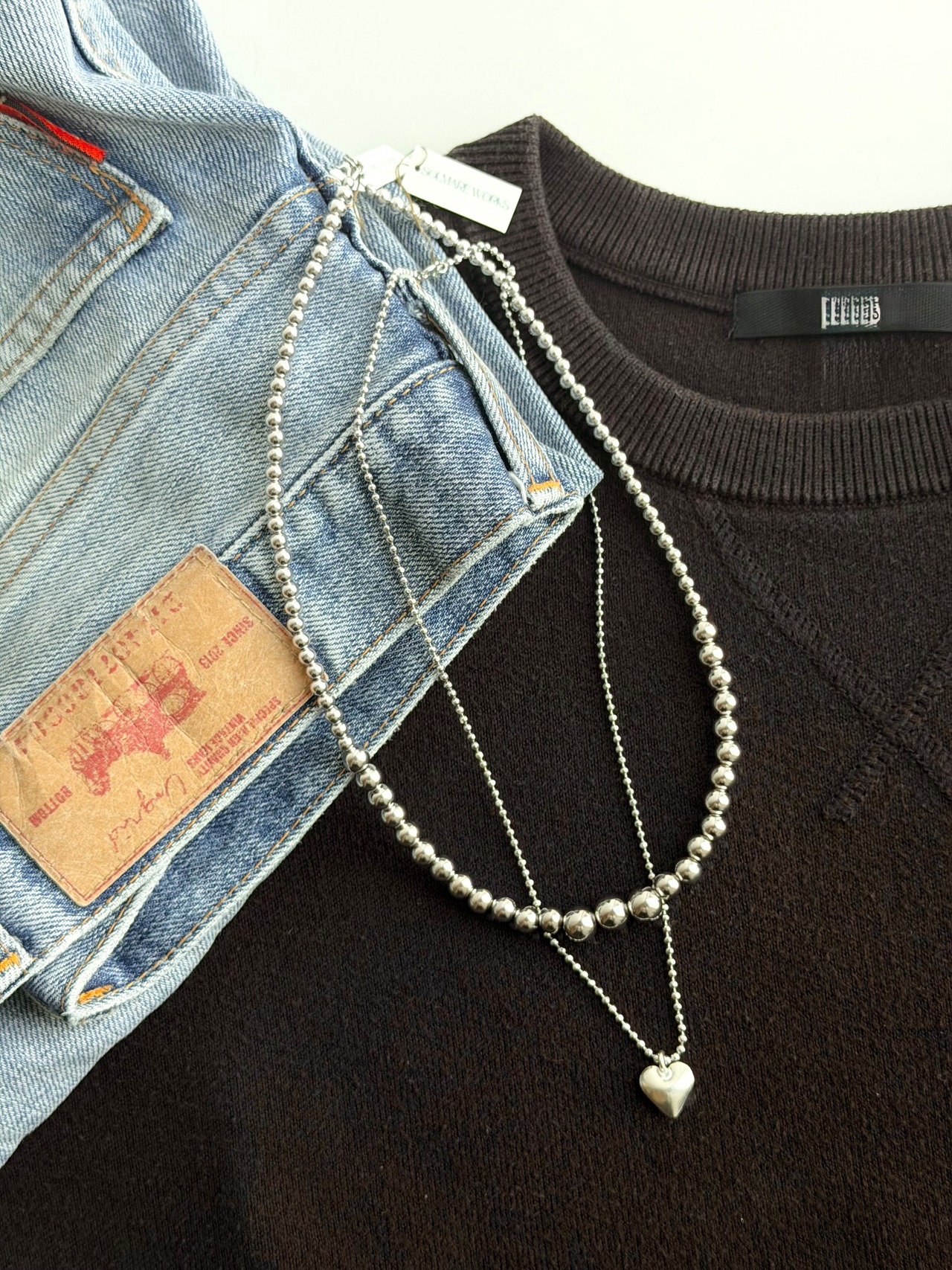 Silver925の上品なカットチェーンに、カレンシルバーのハートを添えたシンプルなネックレス。