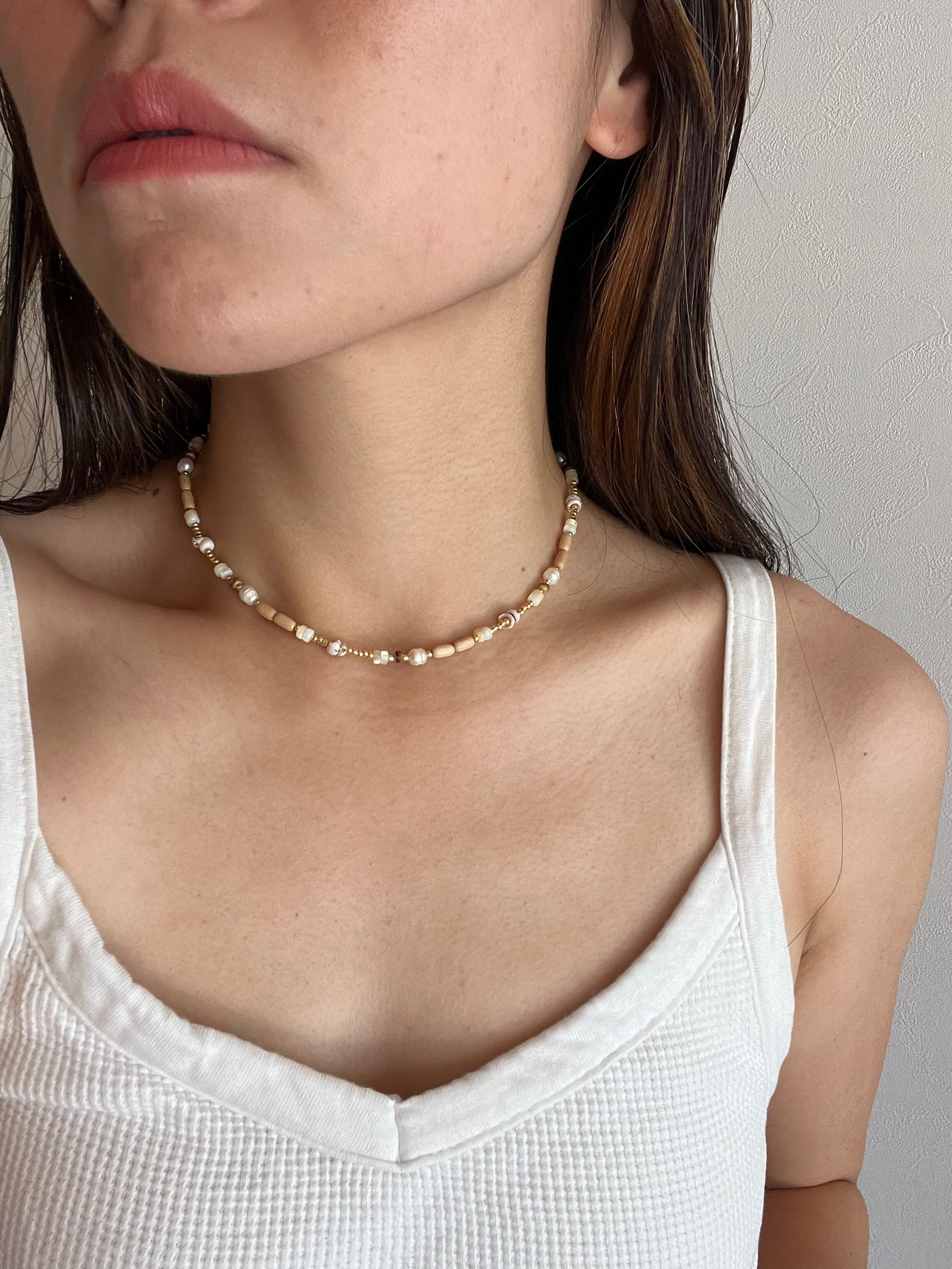 素材 : 14kgf/ビーズ(18kgp)/ウッドビーズ/シェル/淡水パール