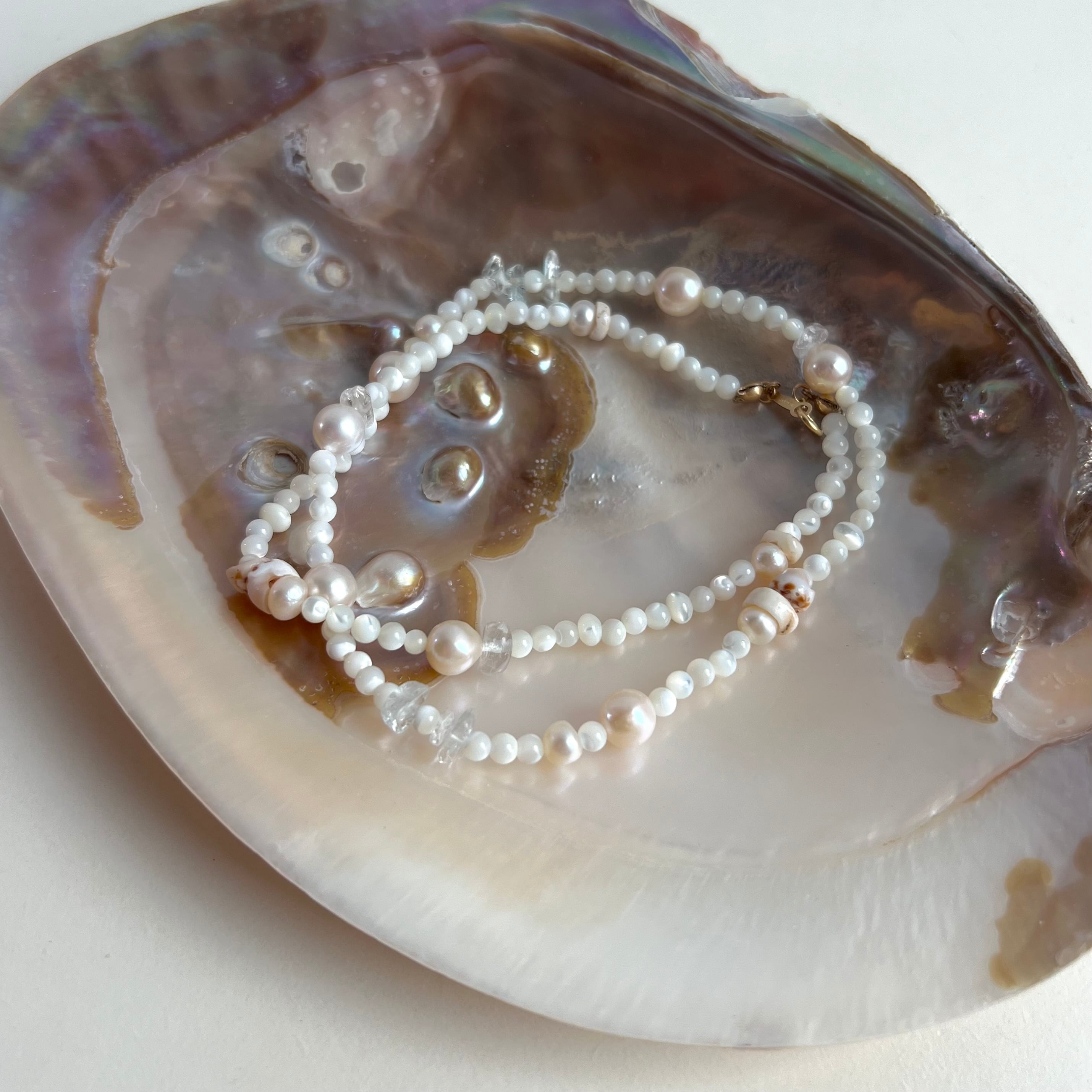 素材 : 14kgf/マザーオブパール/淡水パール/プカシェル/トパーズ
