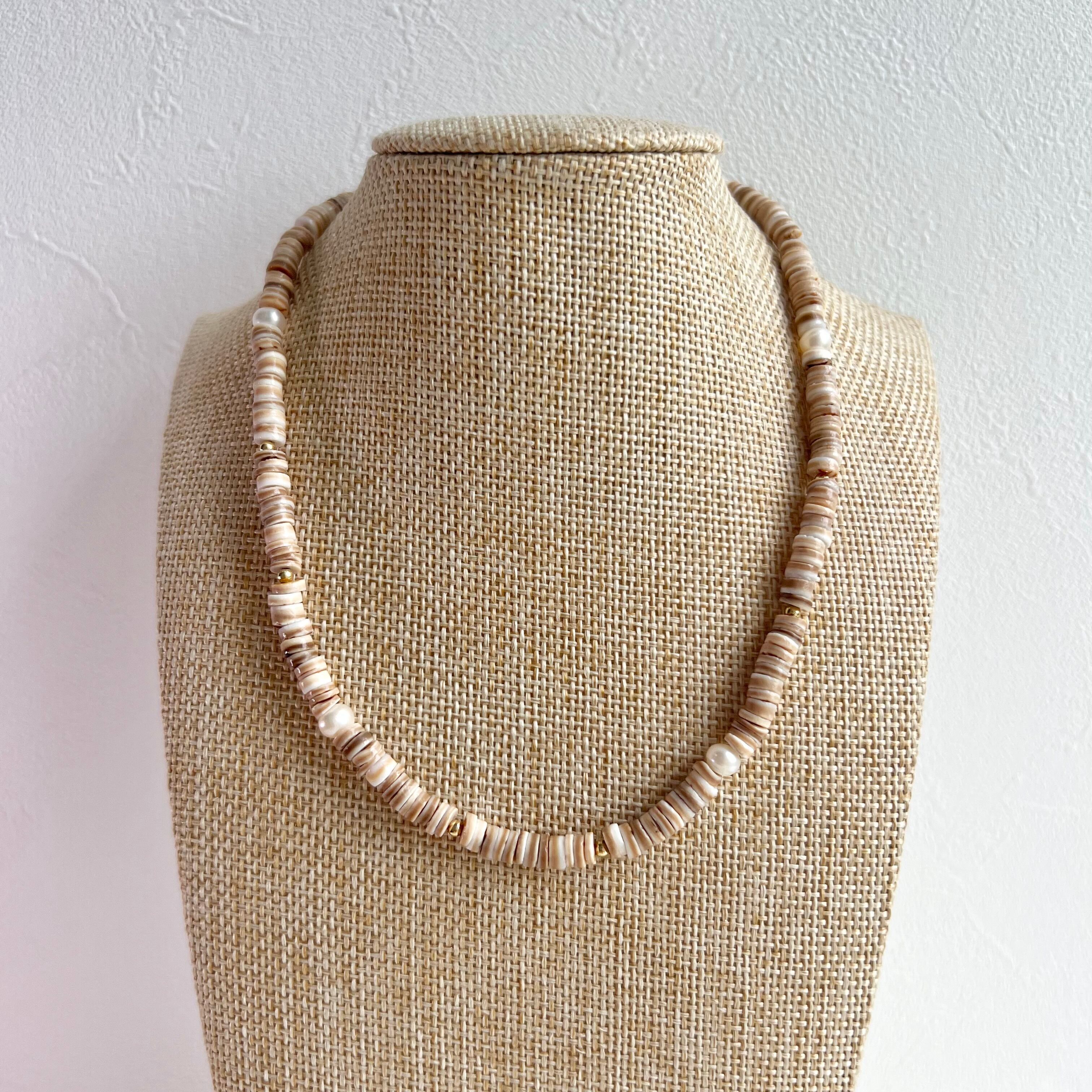 素材 : 14kgf/ブラウンシェル/淡水パール/ステンレスビーズ(18kgp)