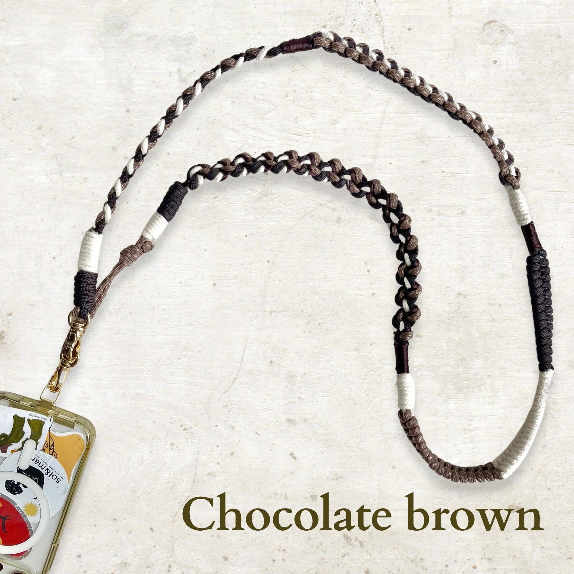 これらを結び合わせてアースカラーなスマホストラップに仕立て上げました。