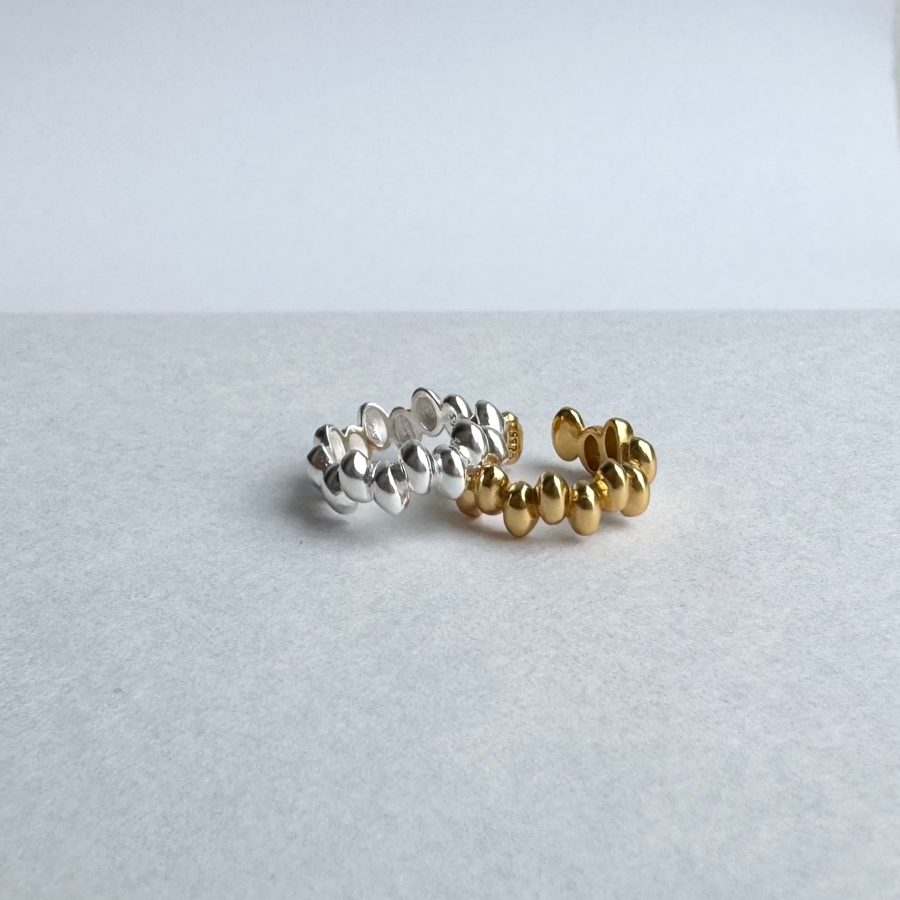小さな小石がつぶつぶと連なったようなデザインのイヤーカフです。